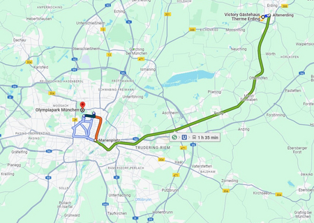 This means you can easily get from your accommodation, the Therme Erding Victory guesthouse, to the Superbloom festival site in Munich in no time at all and without a car.