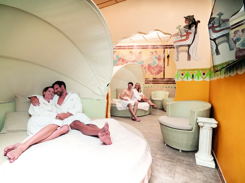 The Vital Oasis is particularly suitable for all those who are still sauna beginners and would like to test saunas first of all in the textile area. A further highlight are the healing vital sources, dreamlike resting possibilities and lovingly created fragrance journeys and infusion ceremonies in this area.