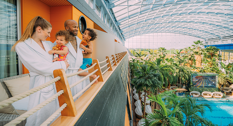 Die exklusiven Panorama-Außenkabinen befinden sich auf dem obersten Deck des Hotel Victory Therme Erding. Stille Eleganz in harmonisch neutralen Farben versprechen erholsame Momente. Lassen Sie die Seele auf dem extra großen Balkon mit bequemer Relax-Lounge baumeln und genießen Sie den atemberaubenden Blick auf das palmengesäumte Wellenbad der größten Therme der Welt.